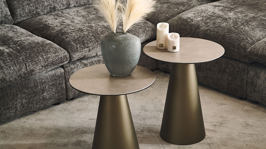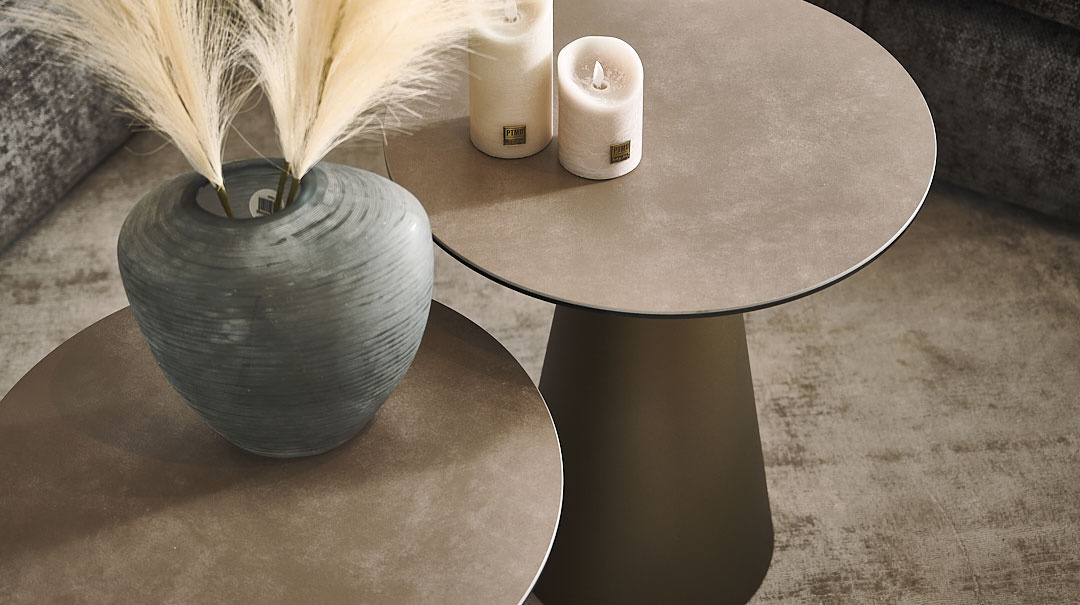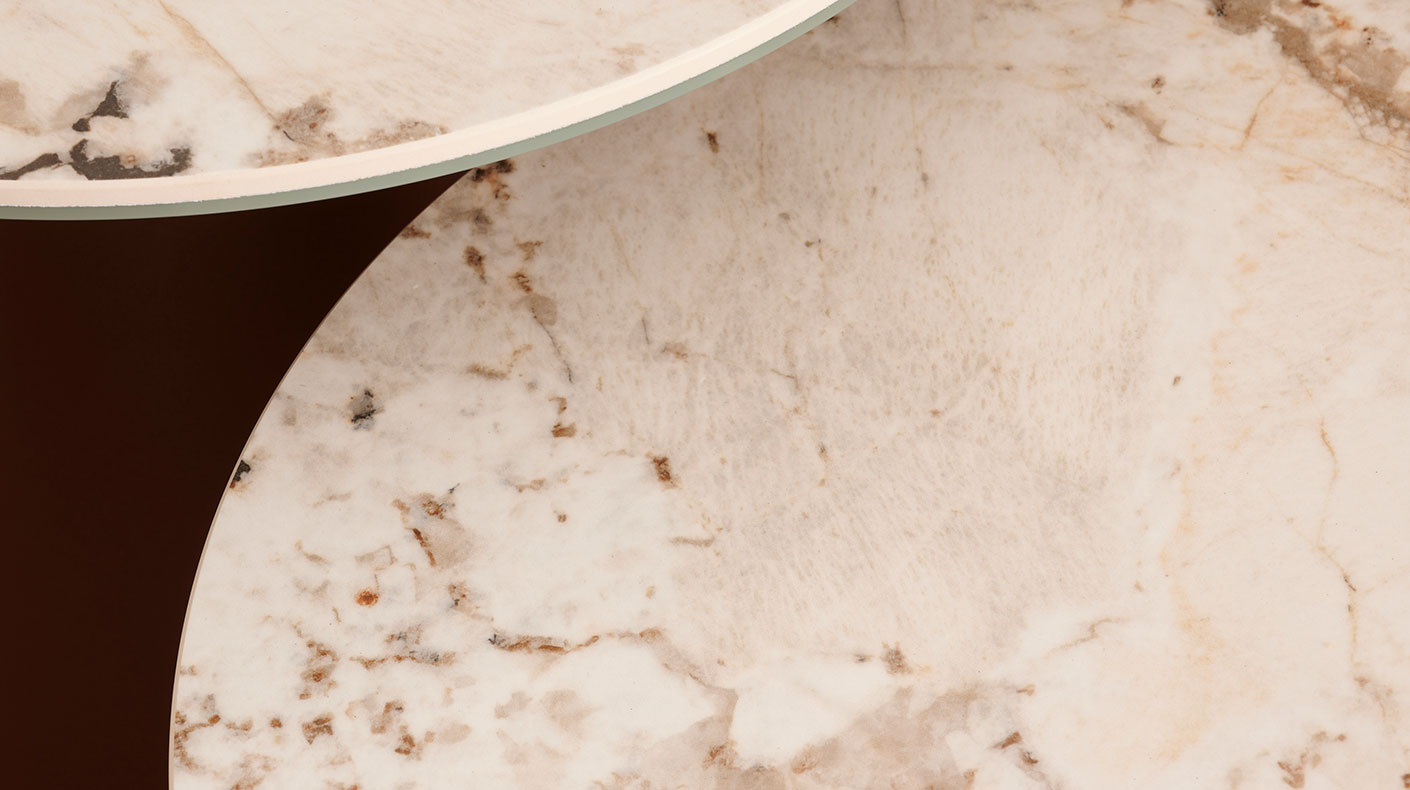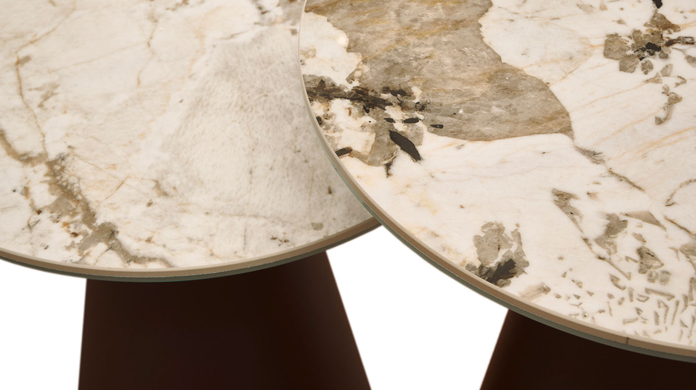 Každý stolek Funghi je vybaven deskou z nejkvalitnějšího italského slinutého křemene. Jeho elegantní povrchová úprava dodává interiéru luxus a jedinečný charakter.