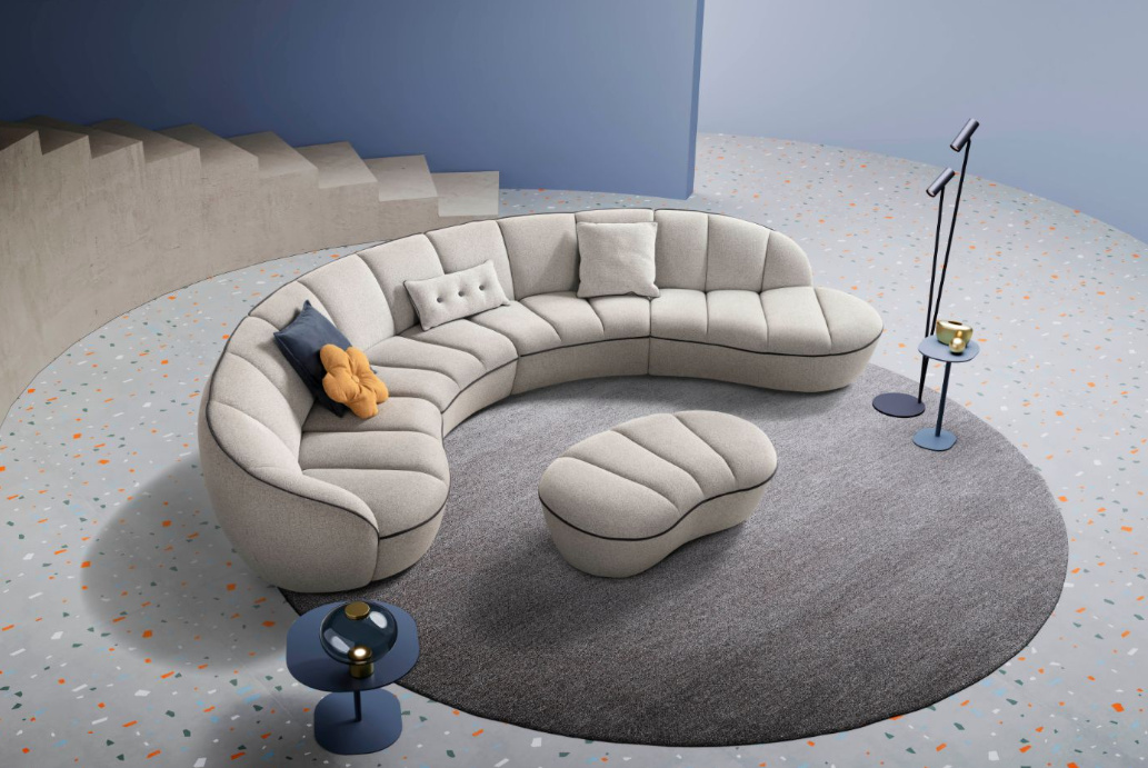 Zakřivený design dodává obývacímu pokoji nejen punc elegance a originality, ale vytváří v interiéru pocit větší prostornosti a plynulosti.