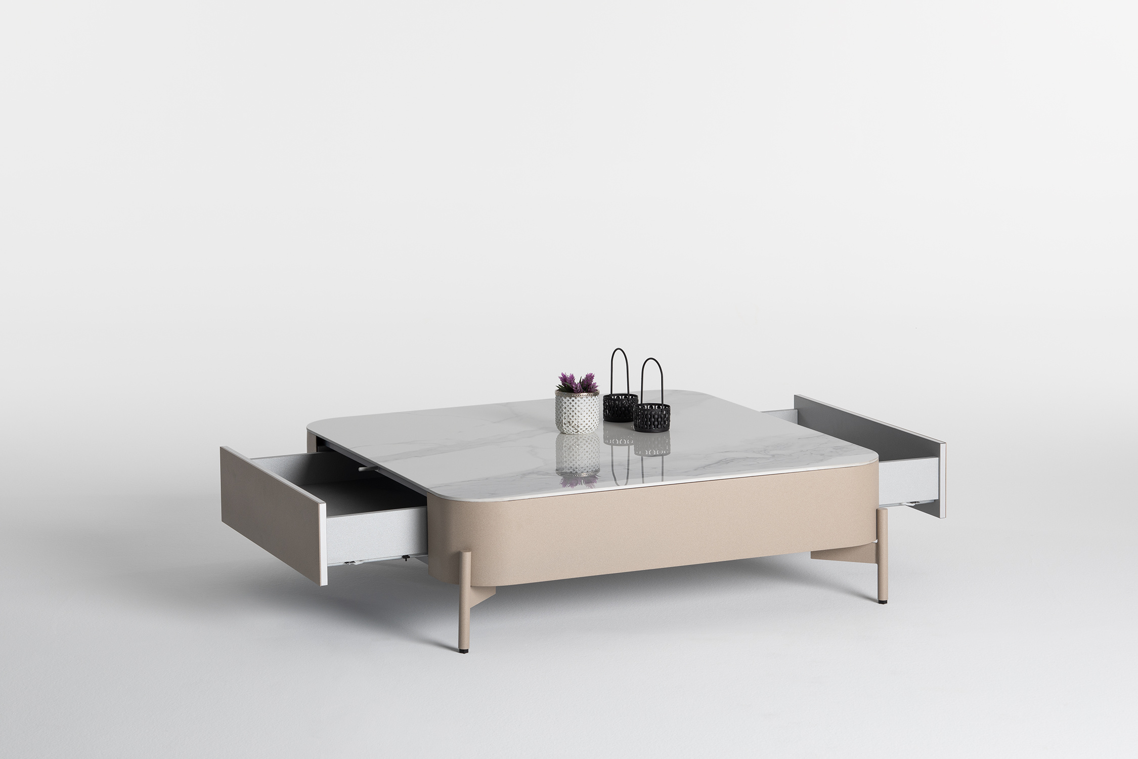 Dvě funkční zásuvky nabízejí prostor pro všechny vaše nezbytnosti, od dálkových ovladačů po časopisy, pomáhají udržovat pořádek ve vašem obývacím pokoji.